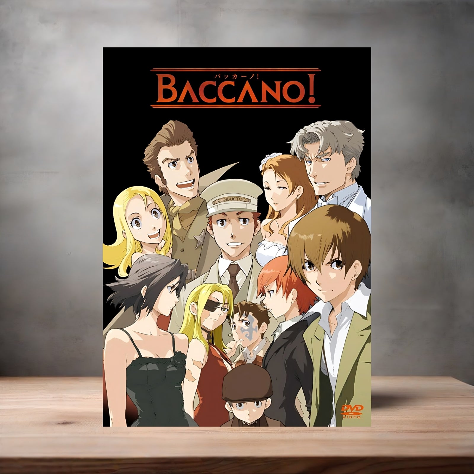 Elevate your space with this Baccano! anime poster printed on durable aluminum. Available in multiple sizes, this high-quality metal print offers vibrant colors and sharp details, ensuring a striking display that resists fading and warping. Perfect for collectors and fans seeking a sleek, modern way to showcase their favorite series.