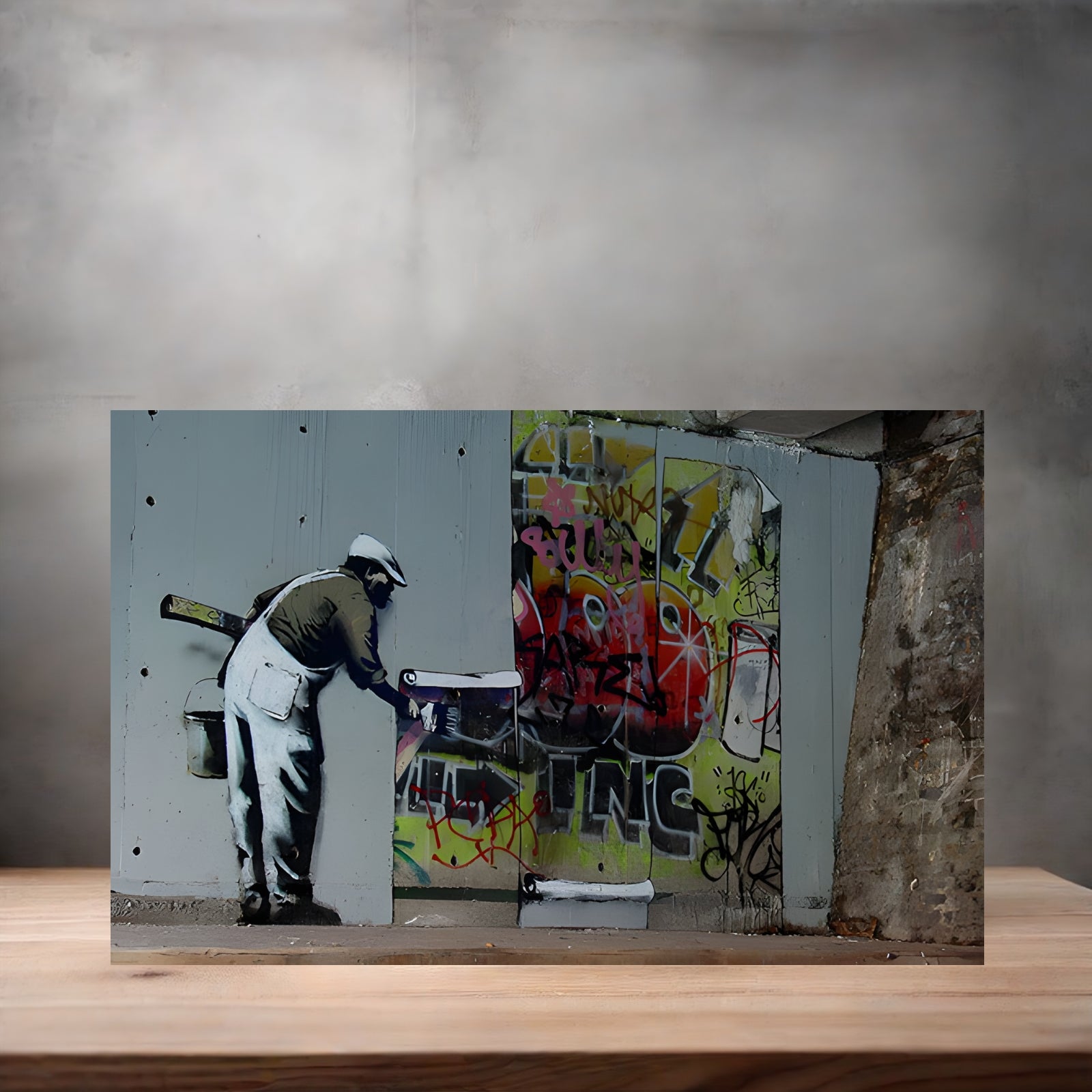 Elevate your space with this striking Banksy-inspired graffiti pop art metal poster. Featuring bold, contemporary design elements characteristic of street art aesthetics, this piece brings urban edge and cultural commentary to any room. The durable metal construction ensures longevity and a premium finish that captures fine details with exceptional clarity. Available in multiple sizes to suit various wall spaces, from intimate corners to statement-making displays. Perfect for art enthusiasts, collectors, and anyone seeking to infuse their environment with thought-provoking visual impact and modern sophistication.