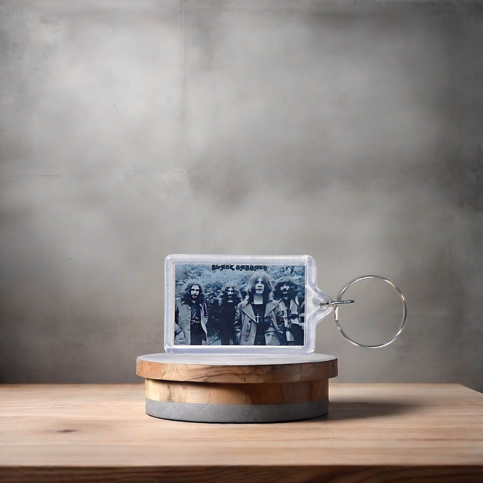 Black Sabbath poster keychain with metal prints encased. Plenty to choose from