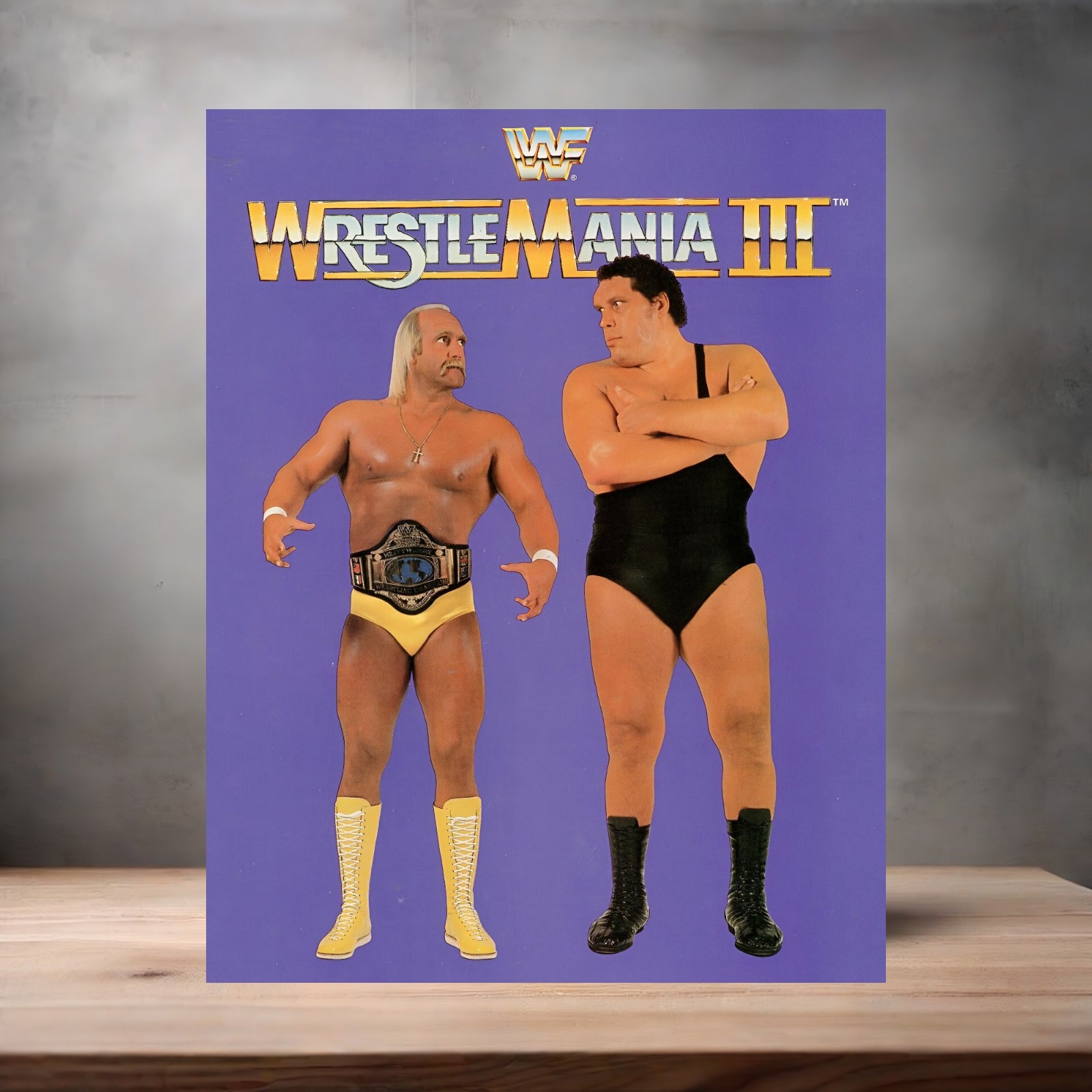 Wrestlemania Hulk Hogan and Andre the Giant poster on aluminum print. Multiple sizes available