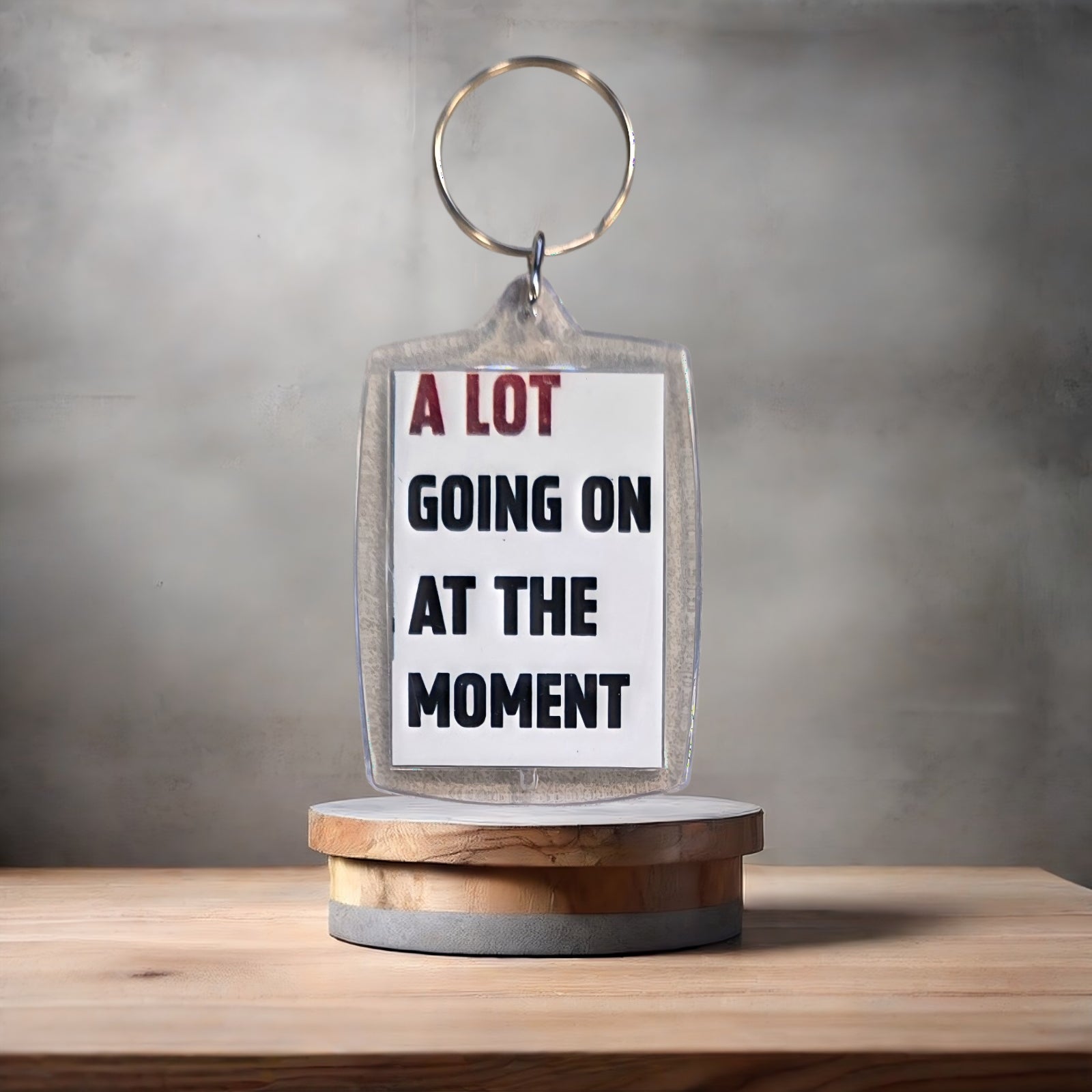Experience Taylor Swift's iconic "A lot Going on at the Moment" poster as a keychain on 2 aluminum prints. Perfect for any fan or music lover, these prints are both durable and stylish. Show off your love for Taylor Swift with this unique and eye-catching accessory.