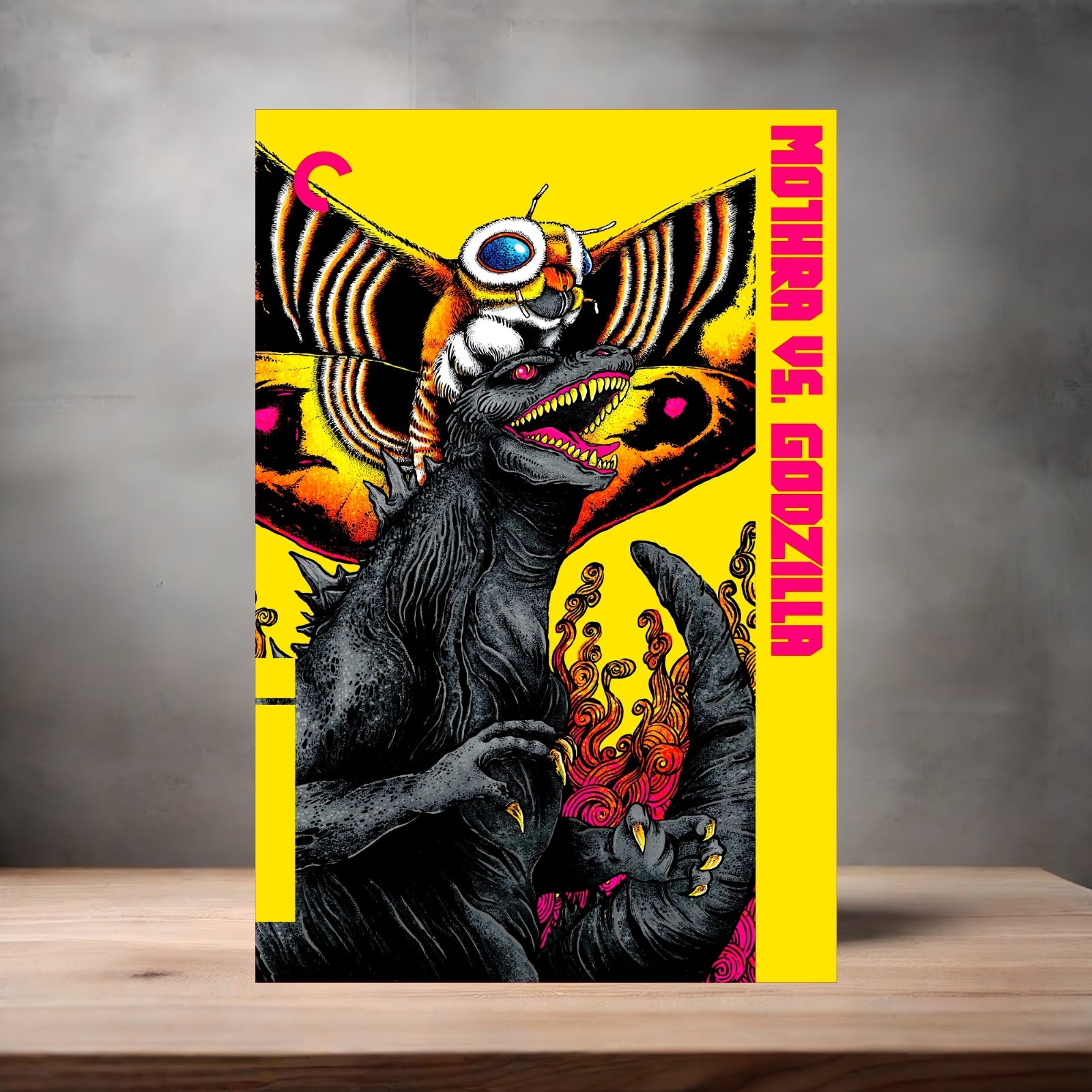 Mothra vs. Godzilla movie poster on aluminum print. Multiple sizes available.