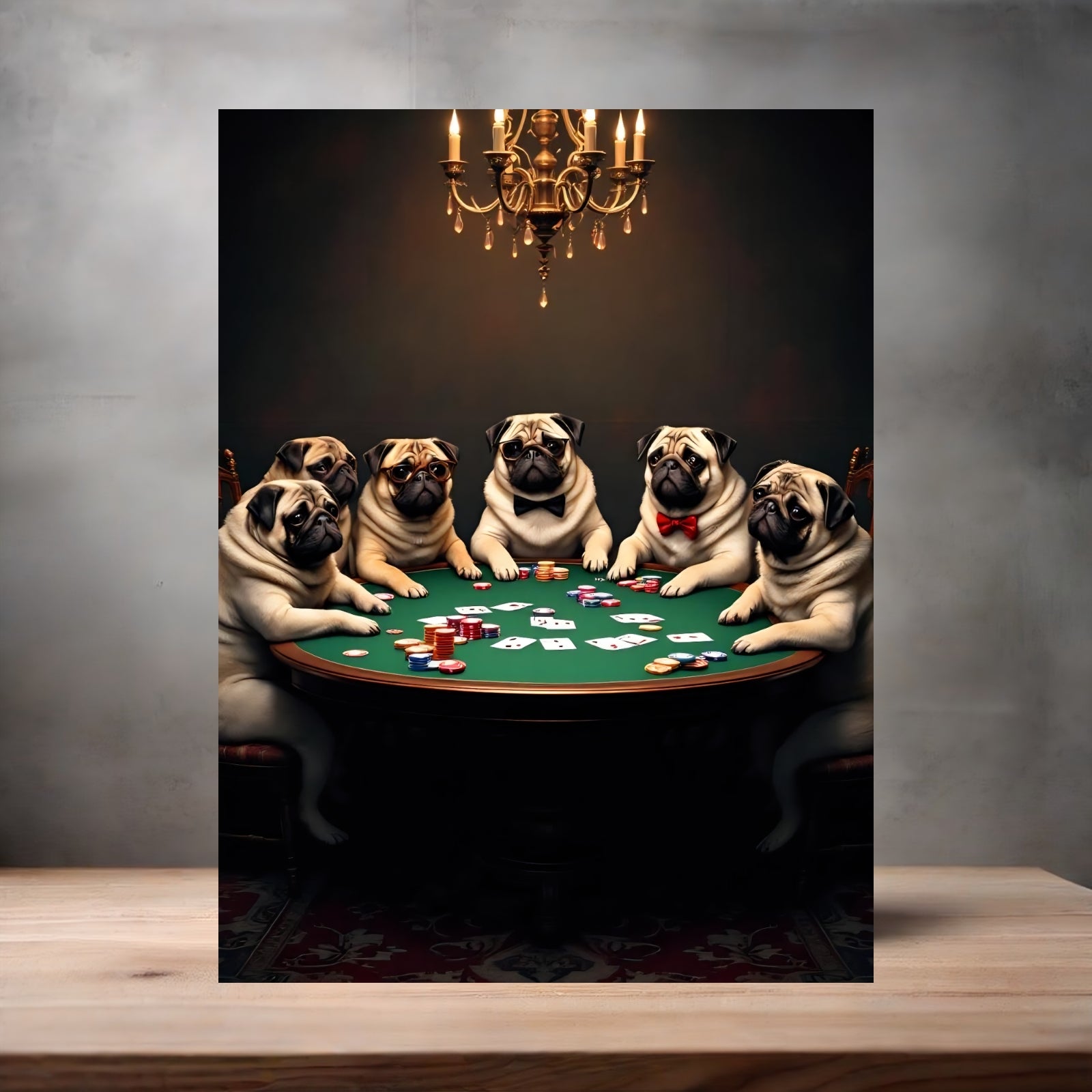 Poker playing Pugs poster on aluminum print. Multiple sizes available