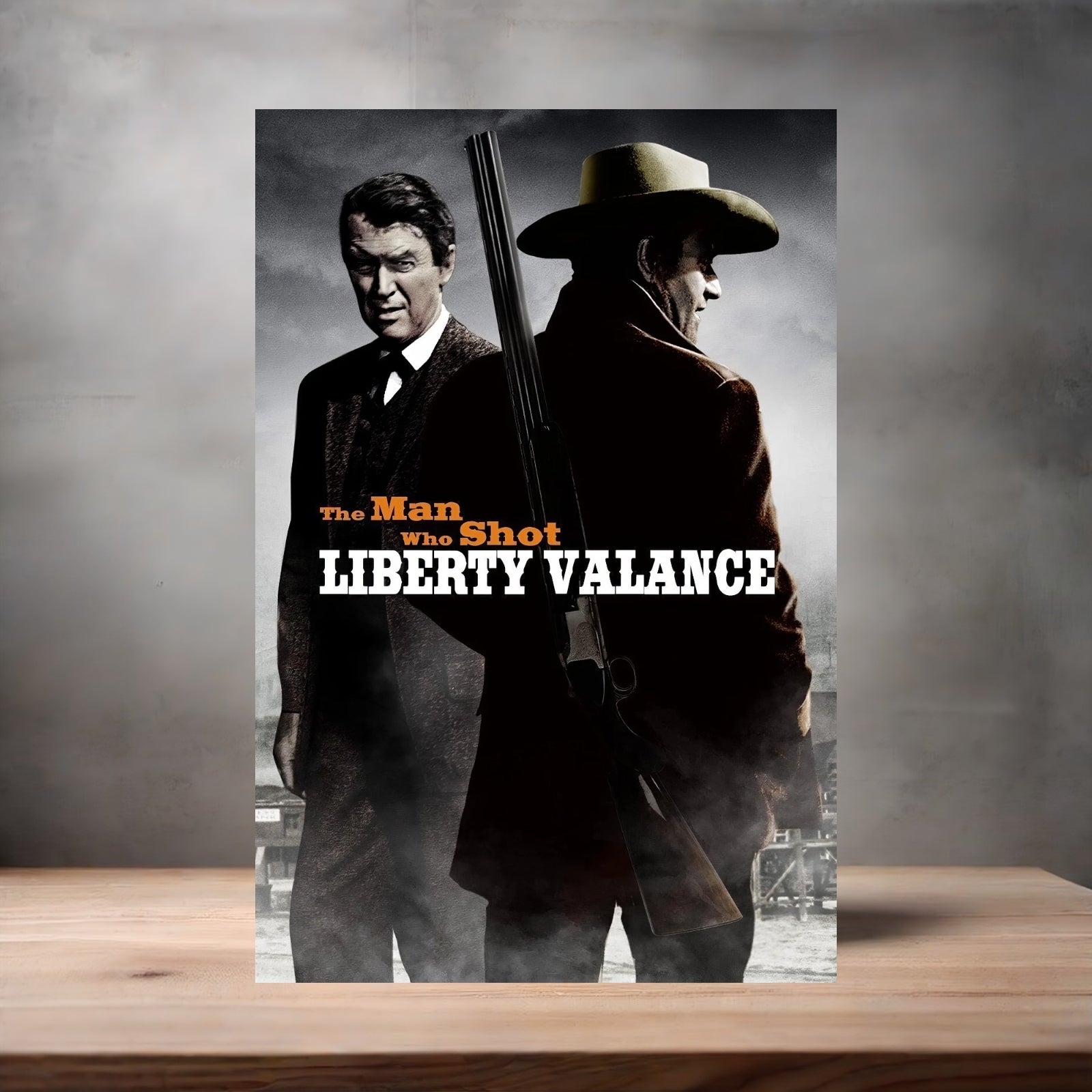 The Man Who Shot Liberty Valance movie poster on aluminum print. Multiple sizes available.