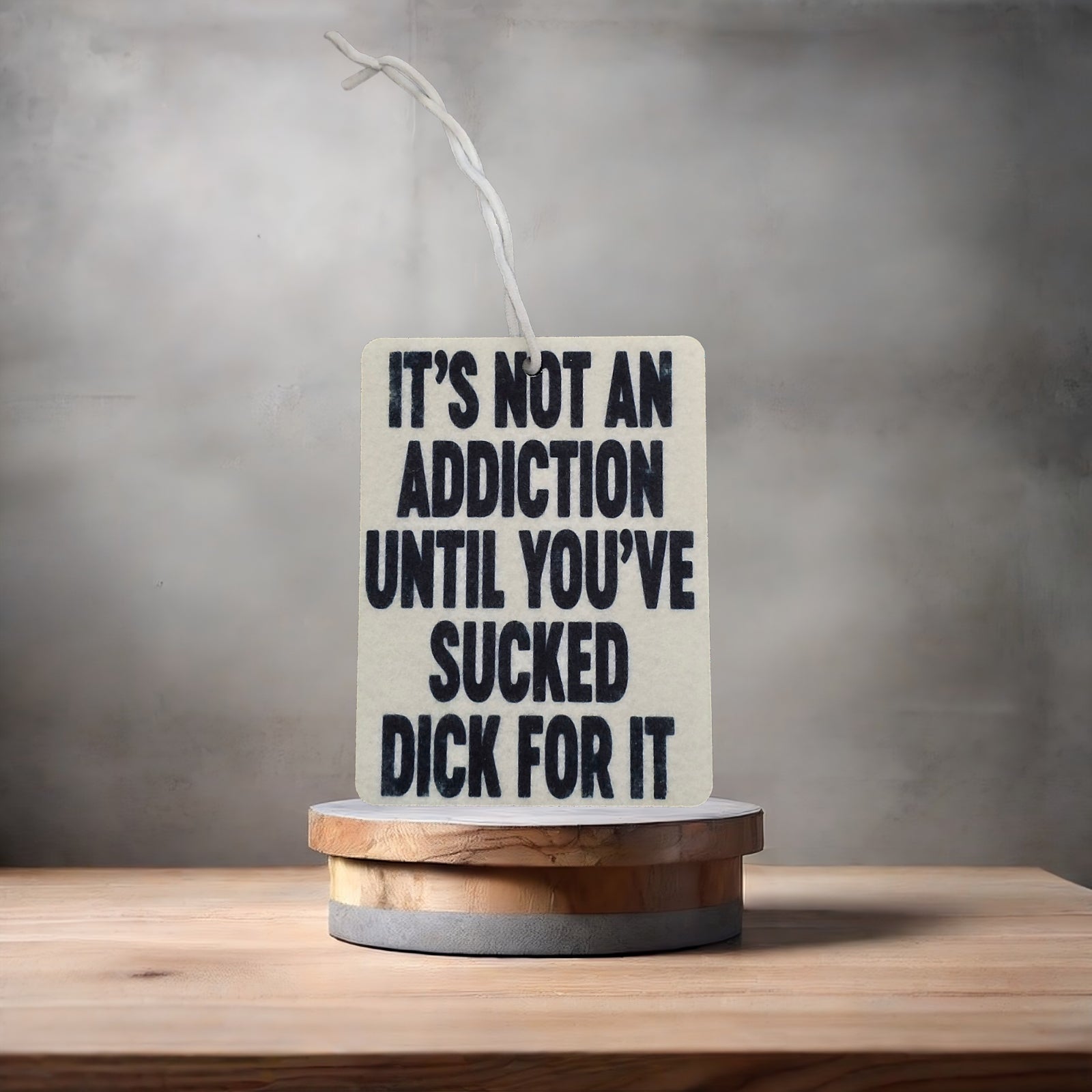This car air freshener offers a wide range of scents to choose from for a personalized touch. Plus, with its bold statement, "It's not an addiction until you've sucked a D for it", it adds a playful and edgy element to your car. An ideal choice for those looking for a unique and adult-themed air freshener.