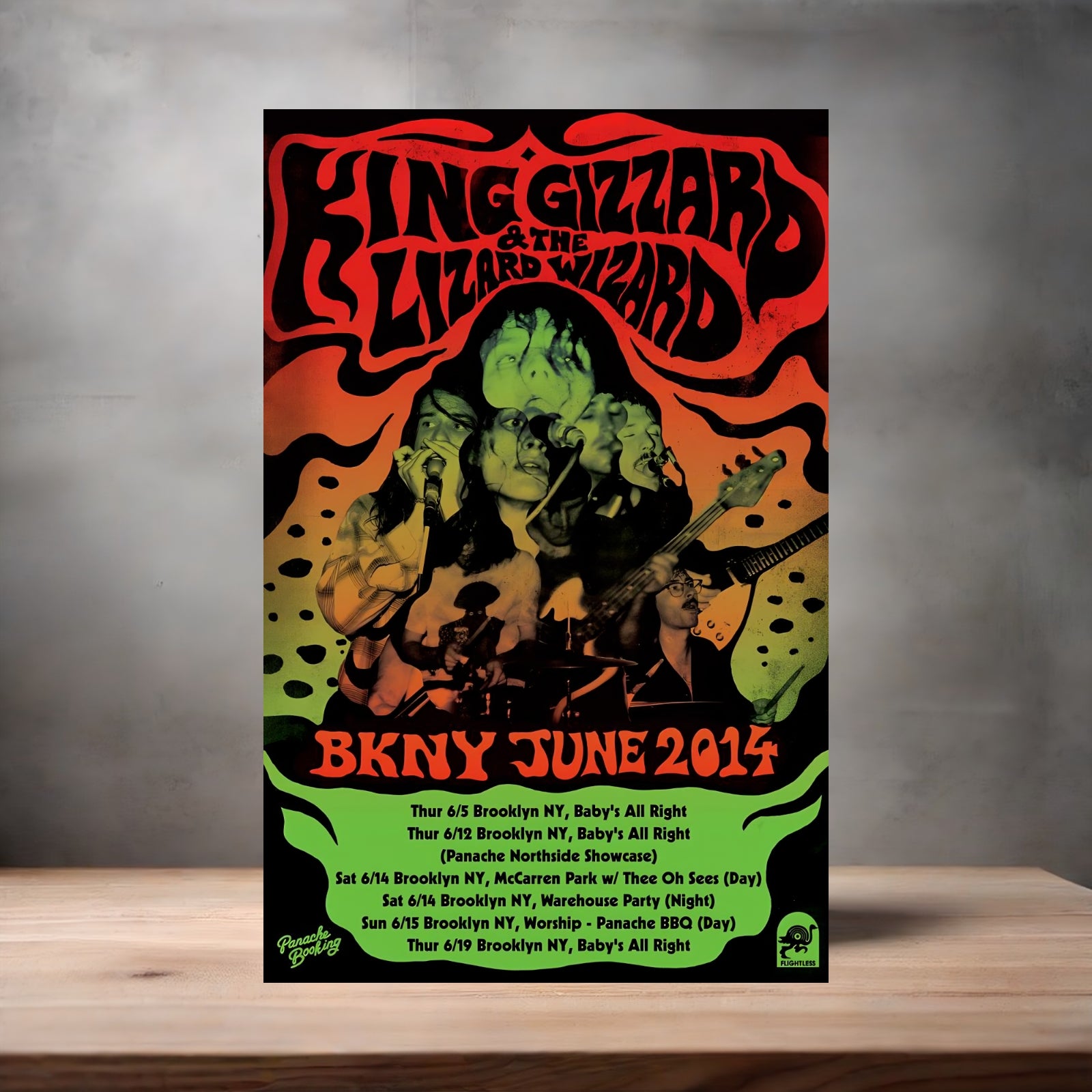 King Gizzard and the Lizard Wizard BKNY 2014 concert poster on aluminum print. Multiple sizes available.