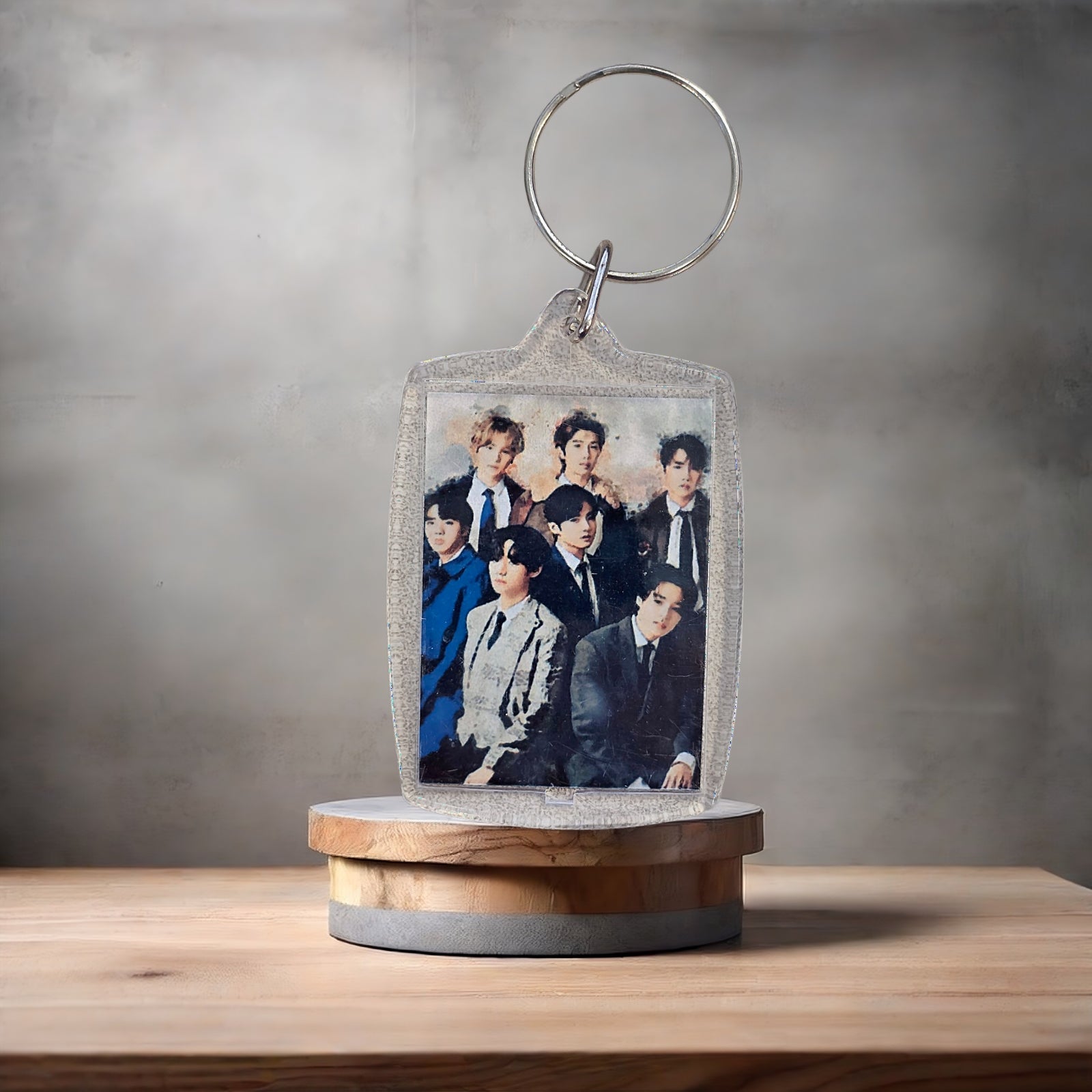 Introducing the Kpop group BTS poster keychain on aluminum prints. Show off your love for the popular Korean boy band with this stylish keychain featuring their iconic poster. Crafted from durable aluminum, this keychain is a must-have for any BTS fan. Add it to your collection today!