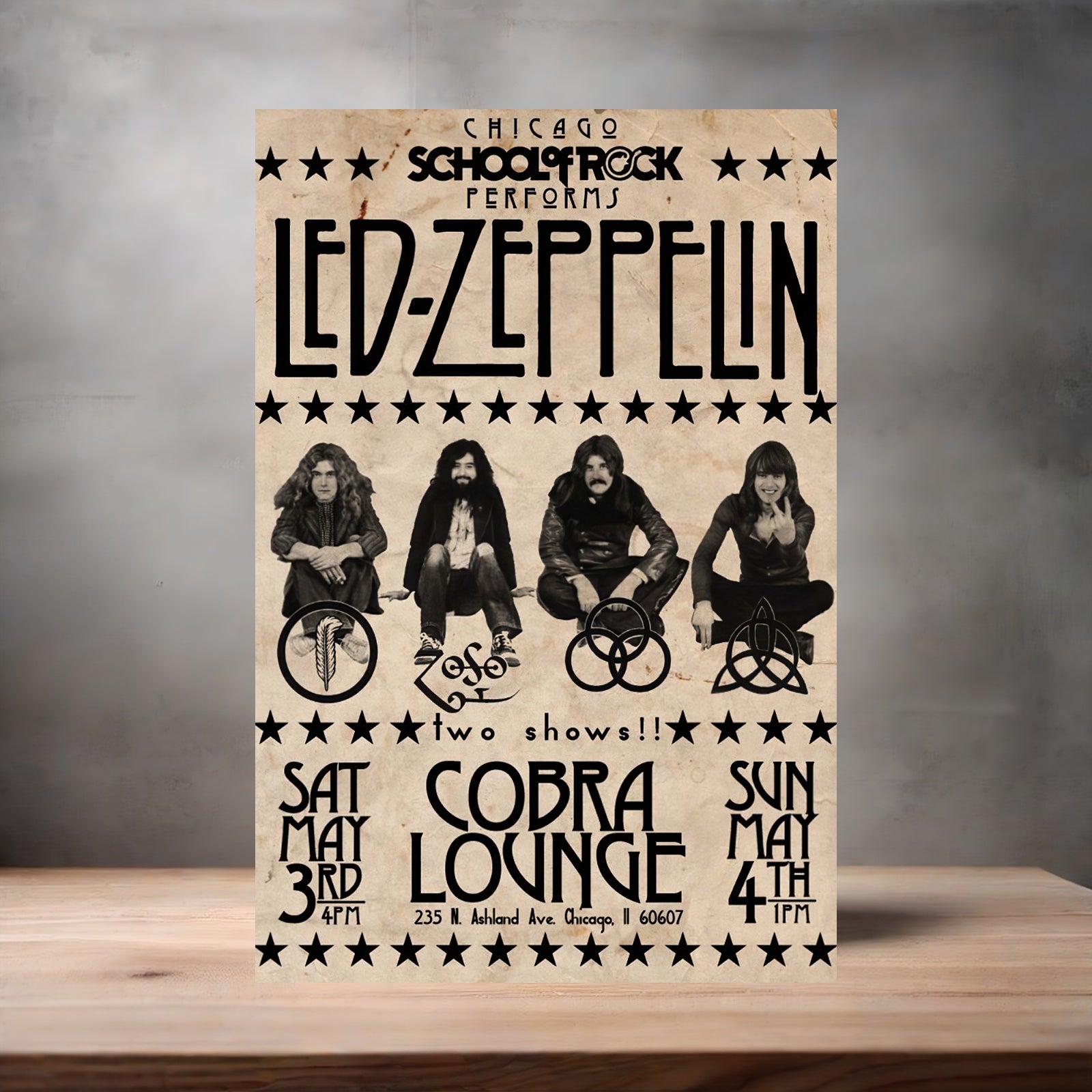 Led Zeppelin Cobra Lounge concert poster on aluminum print. Multiple sizes available