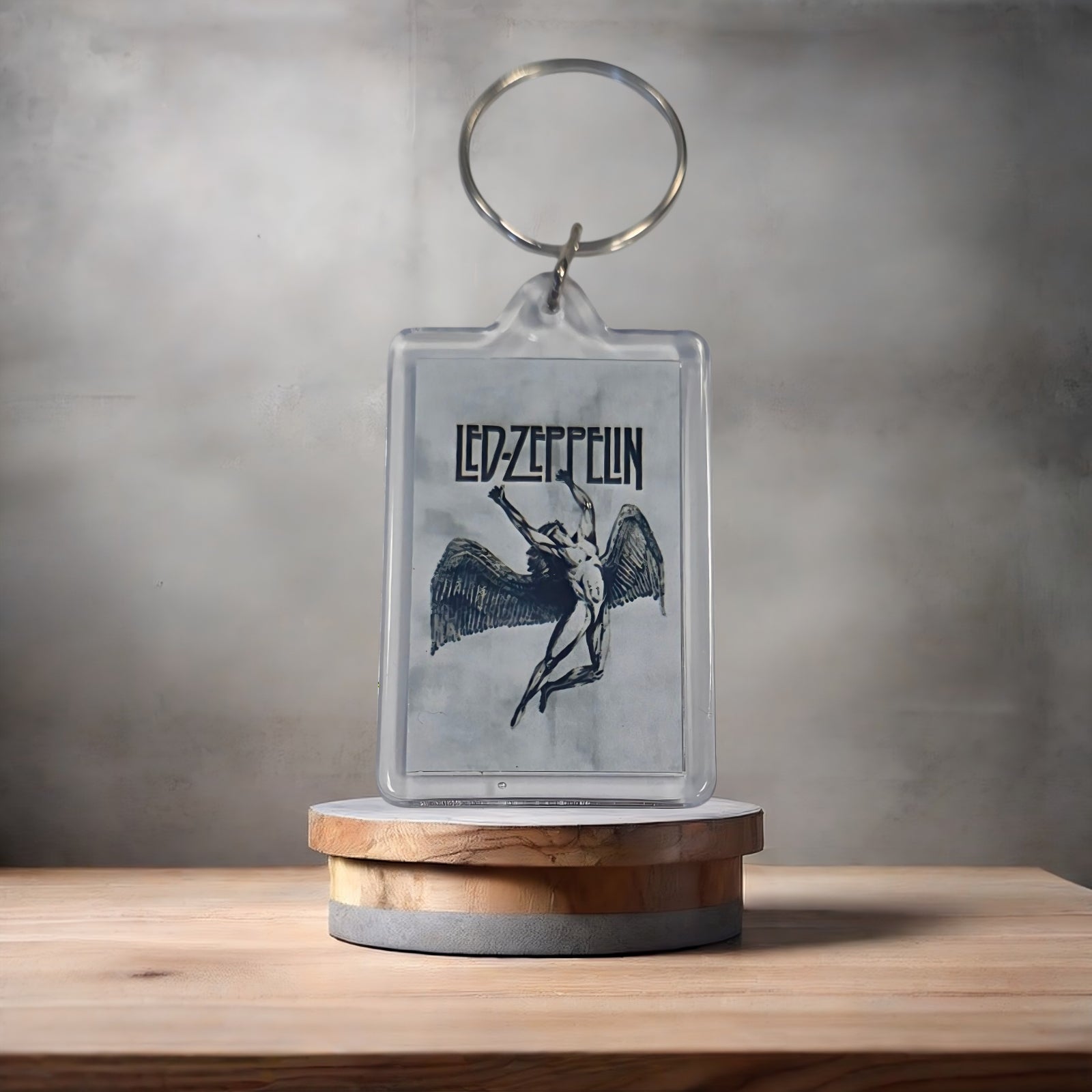 Led Zeppelin Swan Song poster keychain with metal prints encased. Plenty to choose from