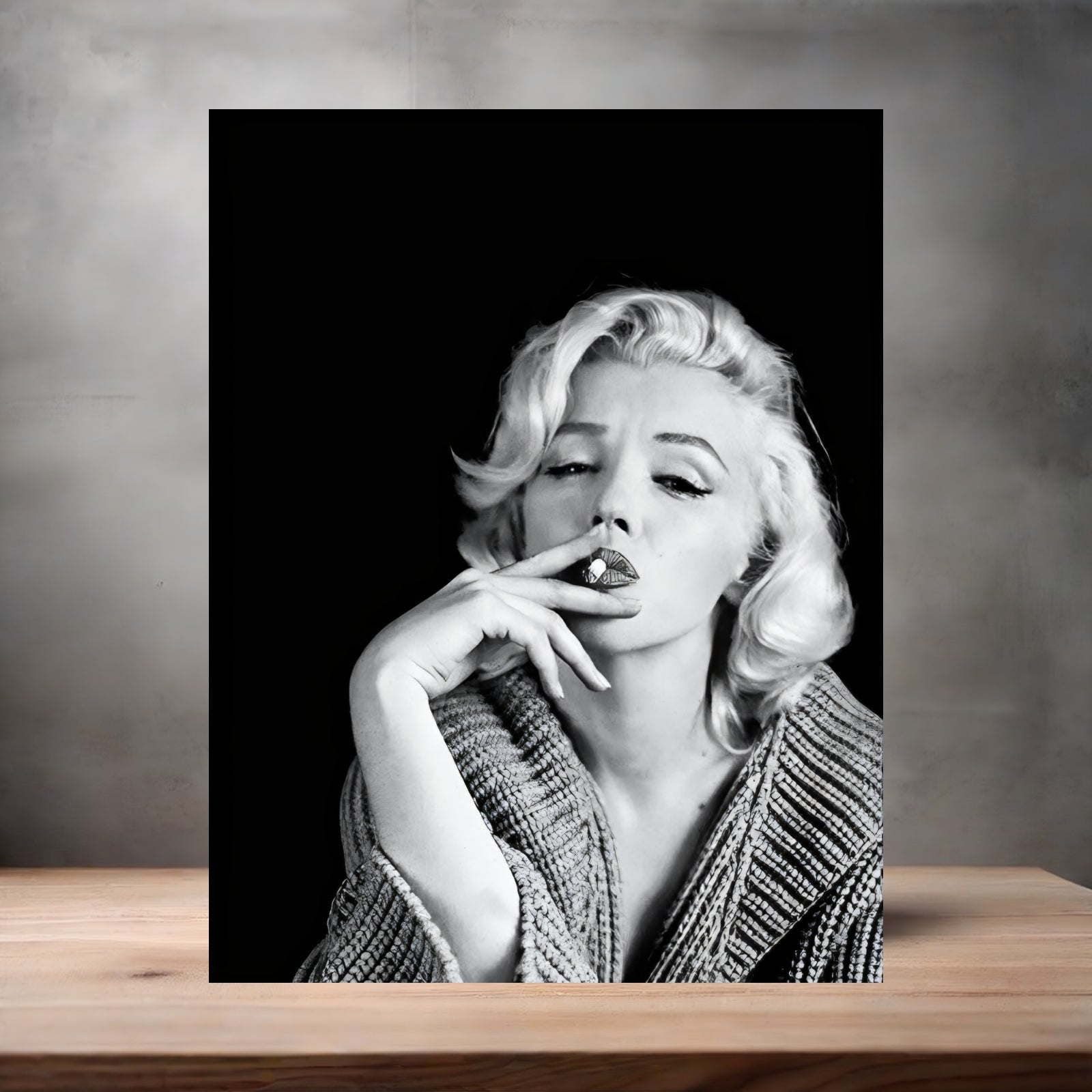 Marilyn Monroe smoking poster on aluminum print. Multiple sizes available