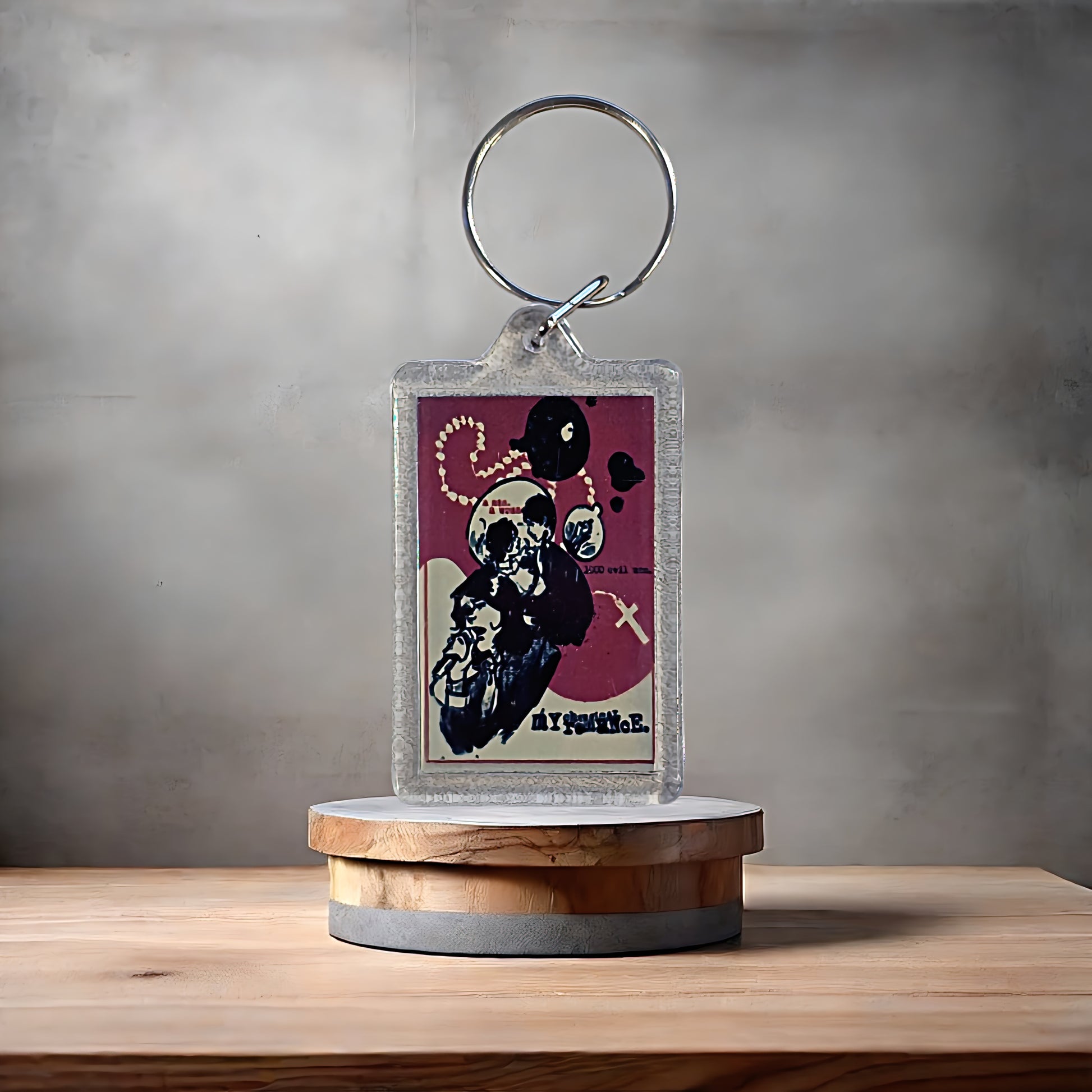 This My Chemical Romance poster keychain features high-quality metal prints that deliver sharp, vibrant imagery with lasting durability. Compact and lightweight, it serves as a stylish accessory while protecting your keys. Perfect for fans who want to carry a piece of their favorite band with them, the metal construction ensures resistance to wear and tear, maintaining its striking appearance over time.