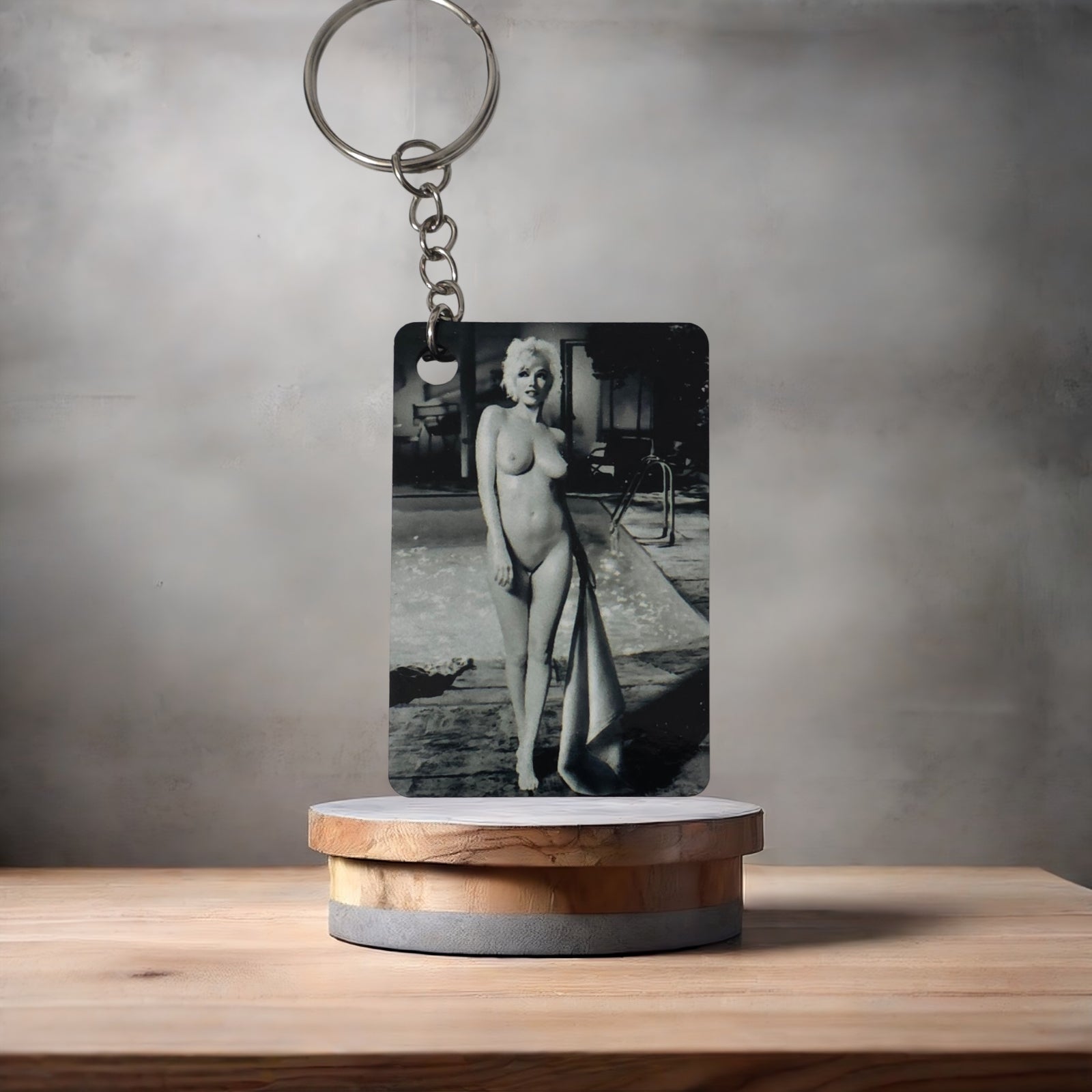 Carry a piece of iconic glamour with you at all times with our Nude Marilyn Monroe keychain. Expertly crafted, this keychain showcases the timeless beauty of the Hollywood legend. The perfect addition to any collection or for adding a touch of elegance to your everyday items.