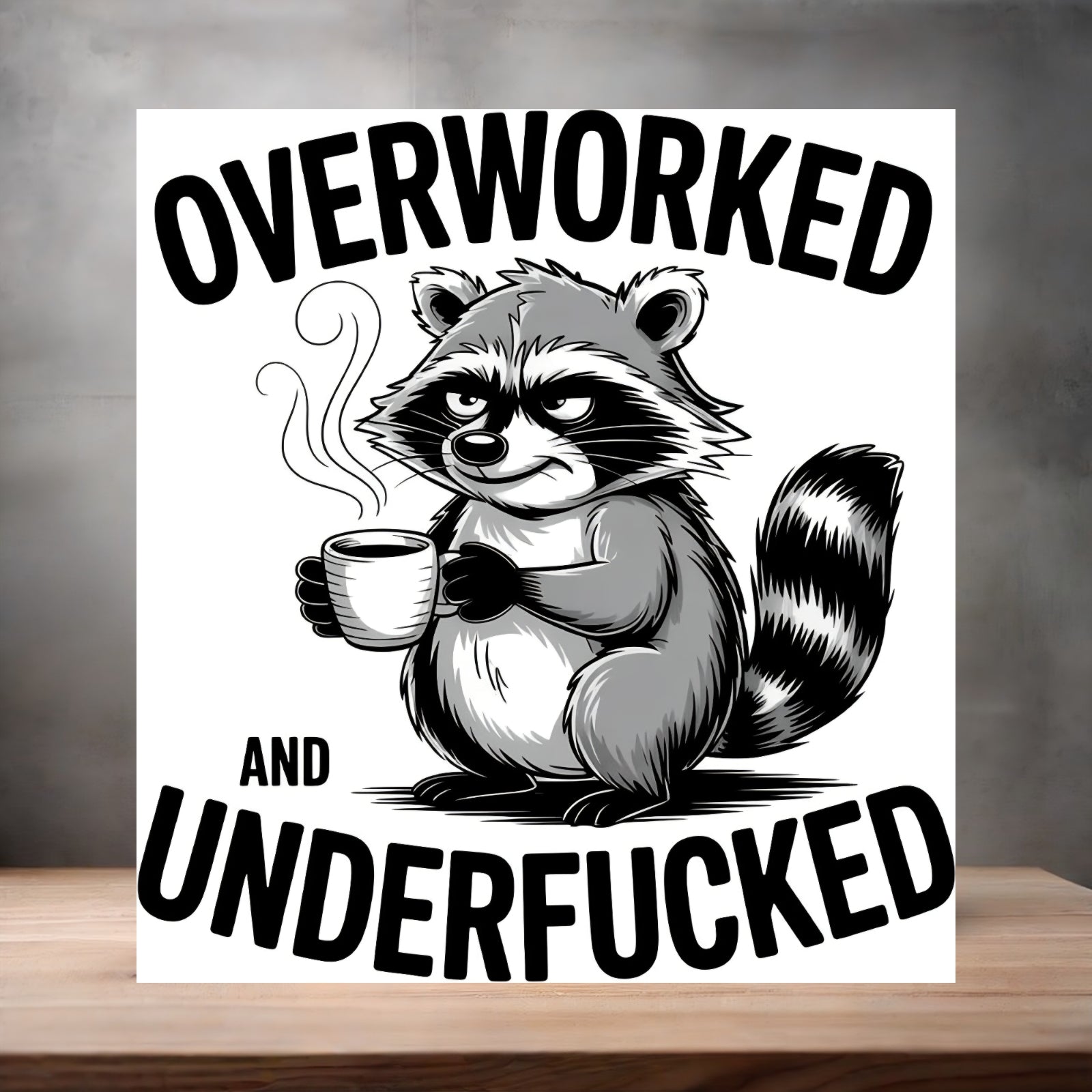 Overworked and Underfucked poster on aluminum print. Multiple sizes available.