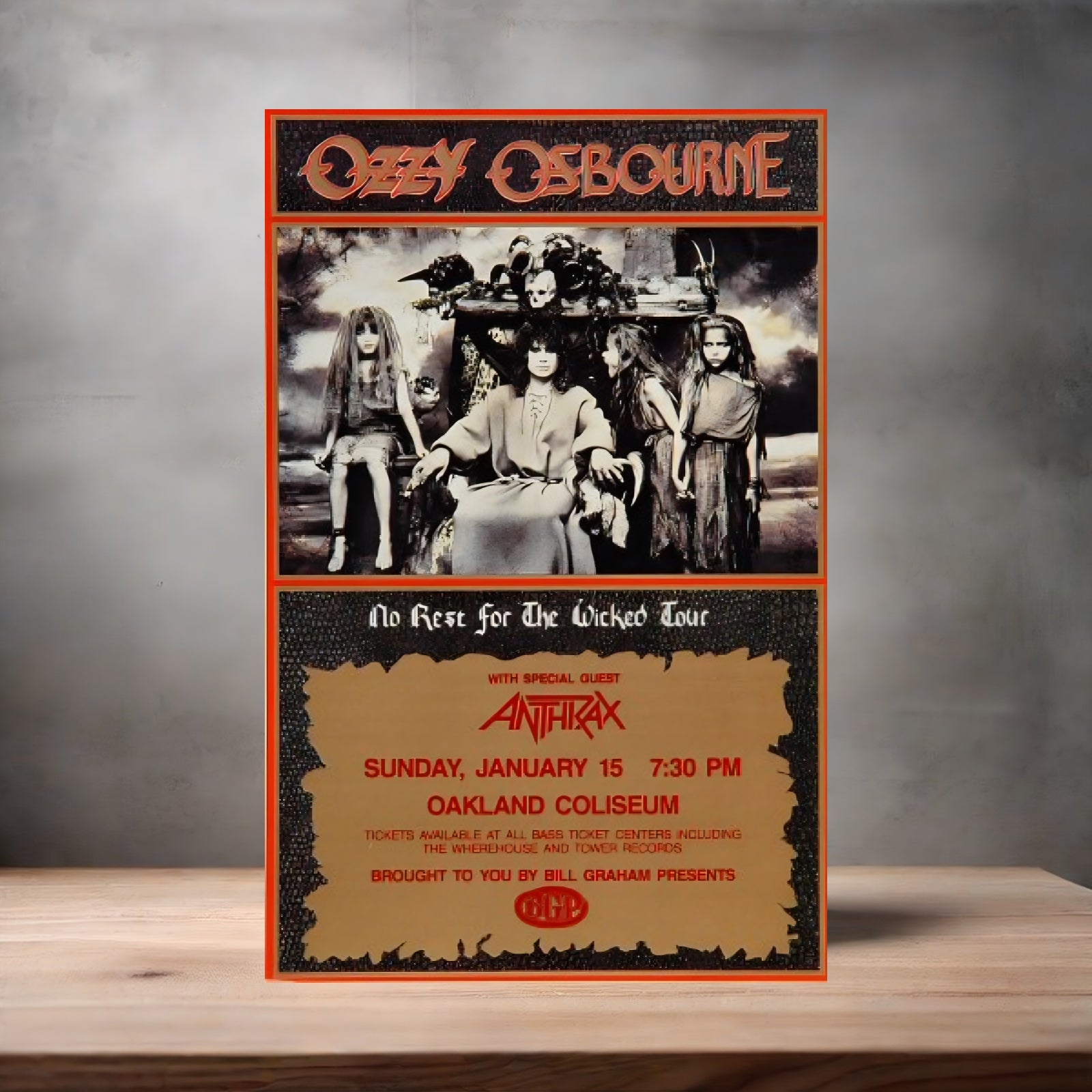 Ozzy Osbourne with Anthrax concert poster on aluminum print. Multiple sizes available