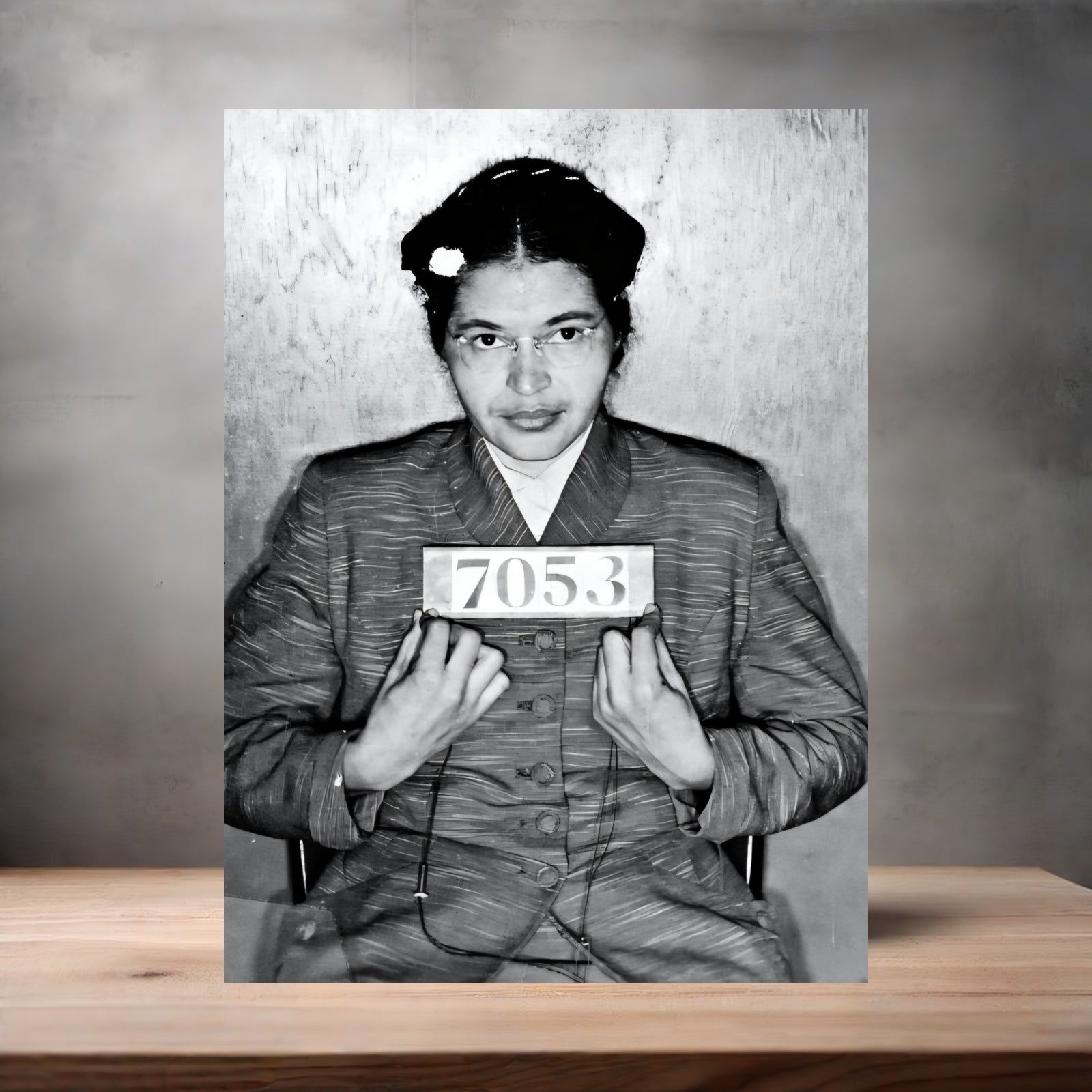 Celebrate a pivotal moment in history with this Rosa Parks mugshot poster printed on high-quality aluminum. Available in multiple sizes, this durable print offers striking clarity and lasting vibrancy, making it a powerful tribute for any space. Ideal for educators, collectors, and history enthusiasts, the aluminum surface enhances the image's depth while ensuring resistance to fading and damage. Showcase resilience and courage with a piece that honors Rosa Parks' enduring legacy.