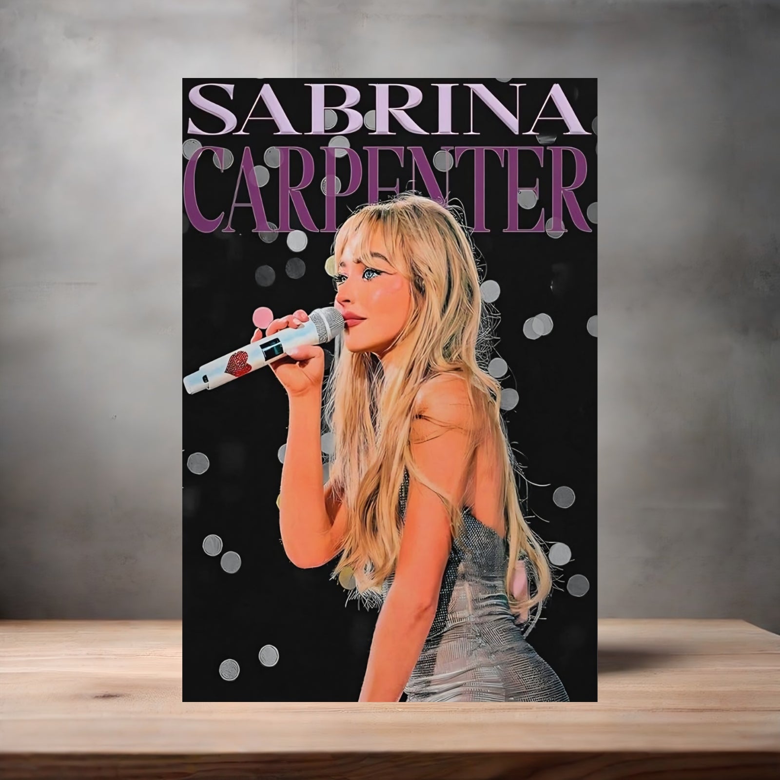This Sabrina Carpenter poster is printed on aluminum, providing a unique and modern look. Choose from multiple sizes to find the perfect fit for your space. Bring home a piece of pop culture with this durable and vibrant poster.