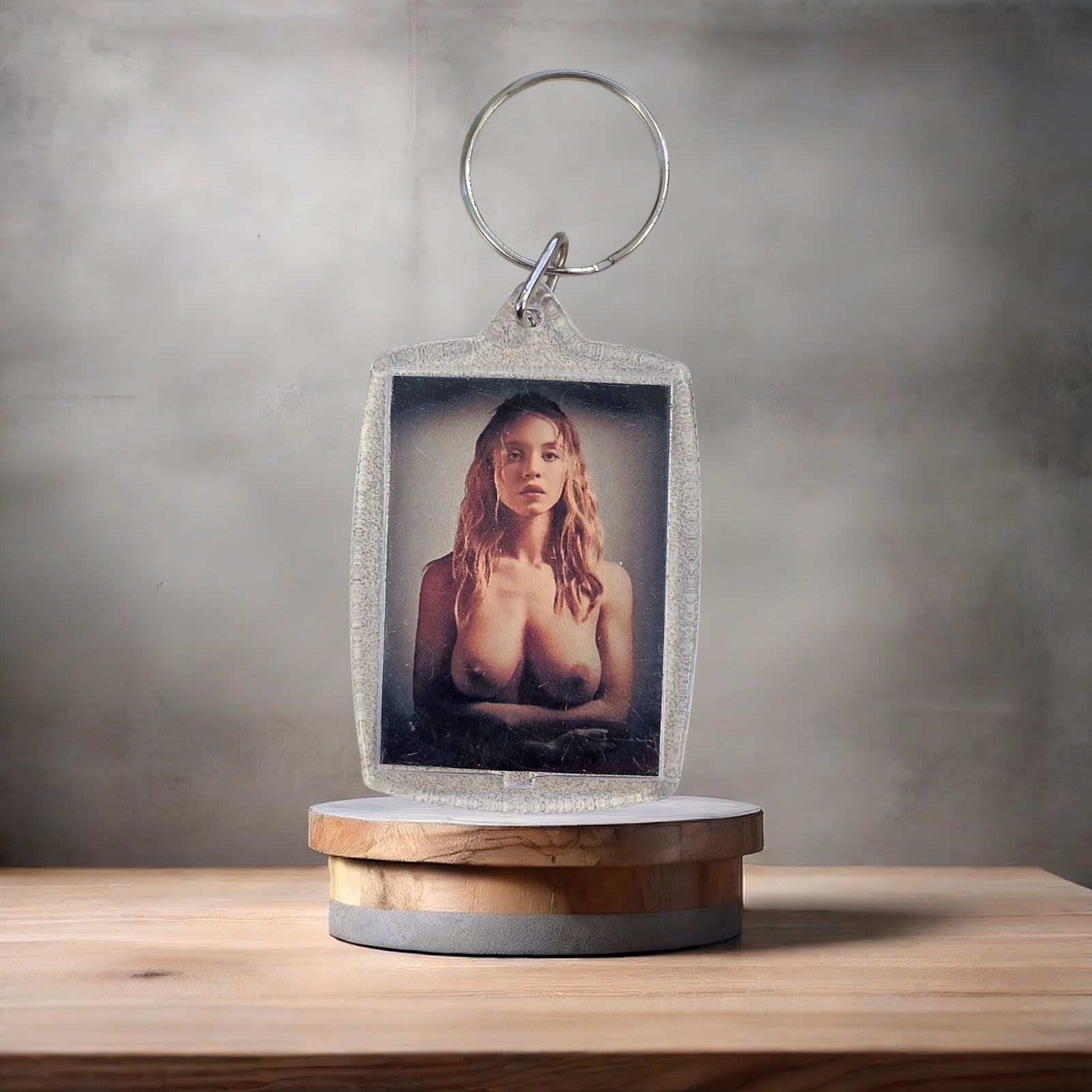 Sydney Sweeney nude poster keychain on aluminum prints. Adult