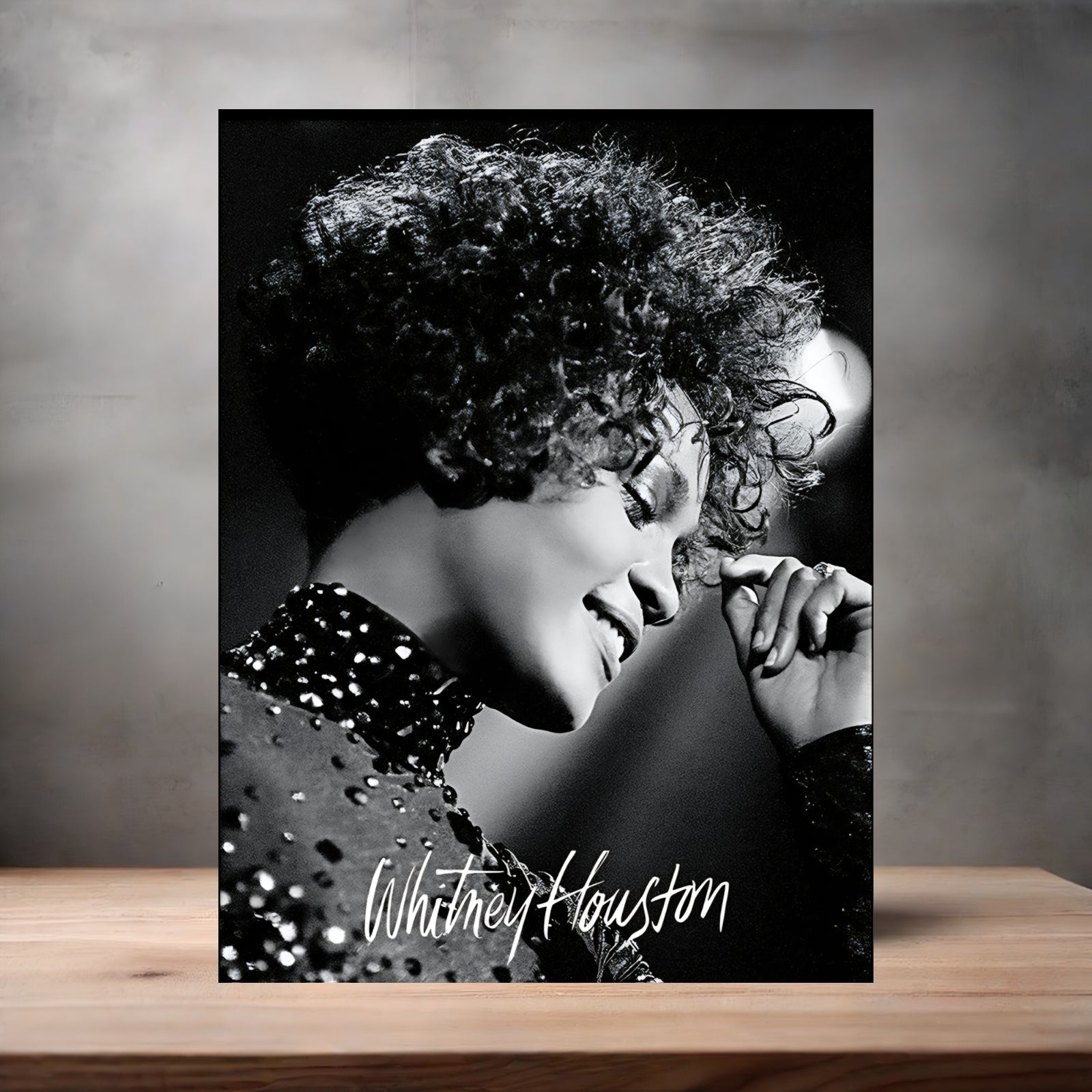 Whitney Houston black and white poster on aluminum print. Multiple sizes available