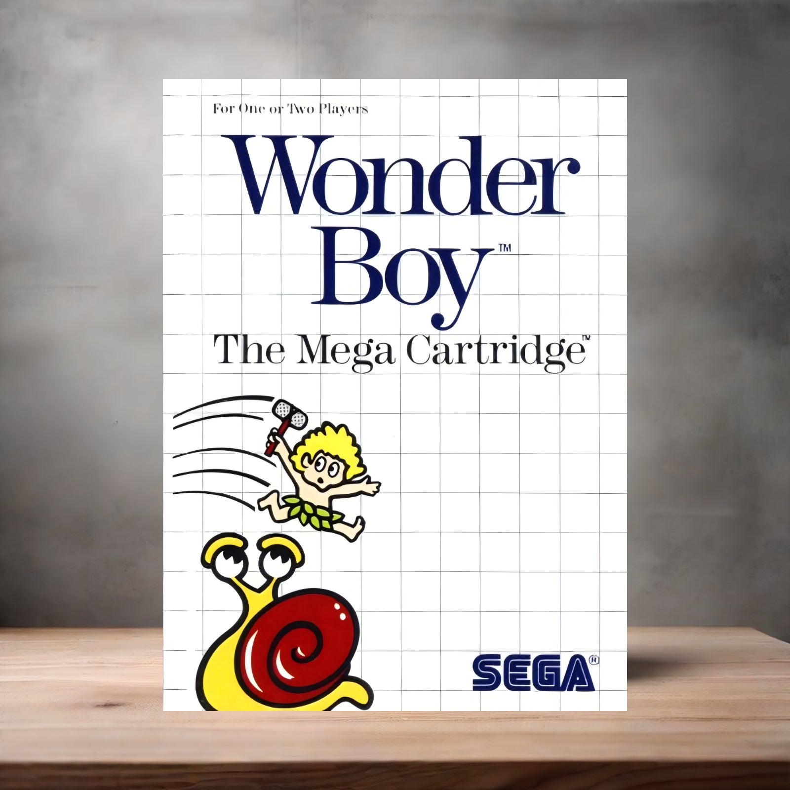 Showcase the timeless adventure of Wonder Boy with this premium aluminum poster, crafted for Sega Master System fans. The print delivers vivid colors and sharp details that highlight the game's classic charm. Available in multiple sizes, this durable metal print offers a sleek and lasting display solution, perfect for enhancing any gaming collection or room decor. Its robust construction ensures your favorite game artwork remains vibrant and well-preserved over time.