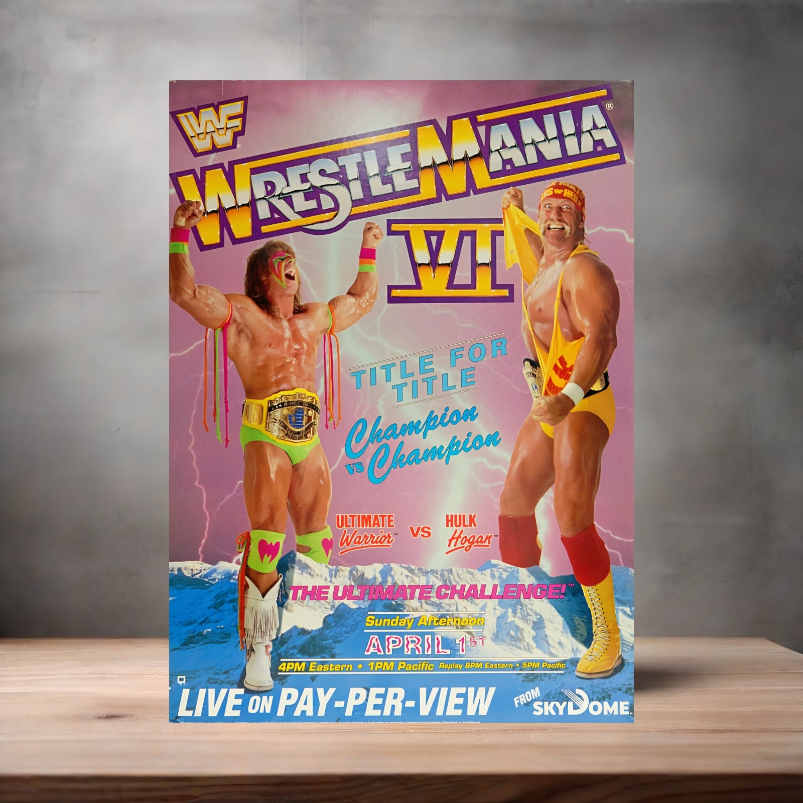 Wrestlemania 6 Hulk Hogan and Ultimate Warrior poster on aluminum print. Multiple sizes available